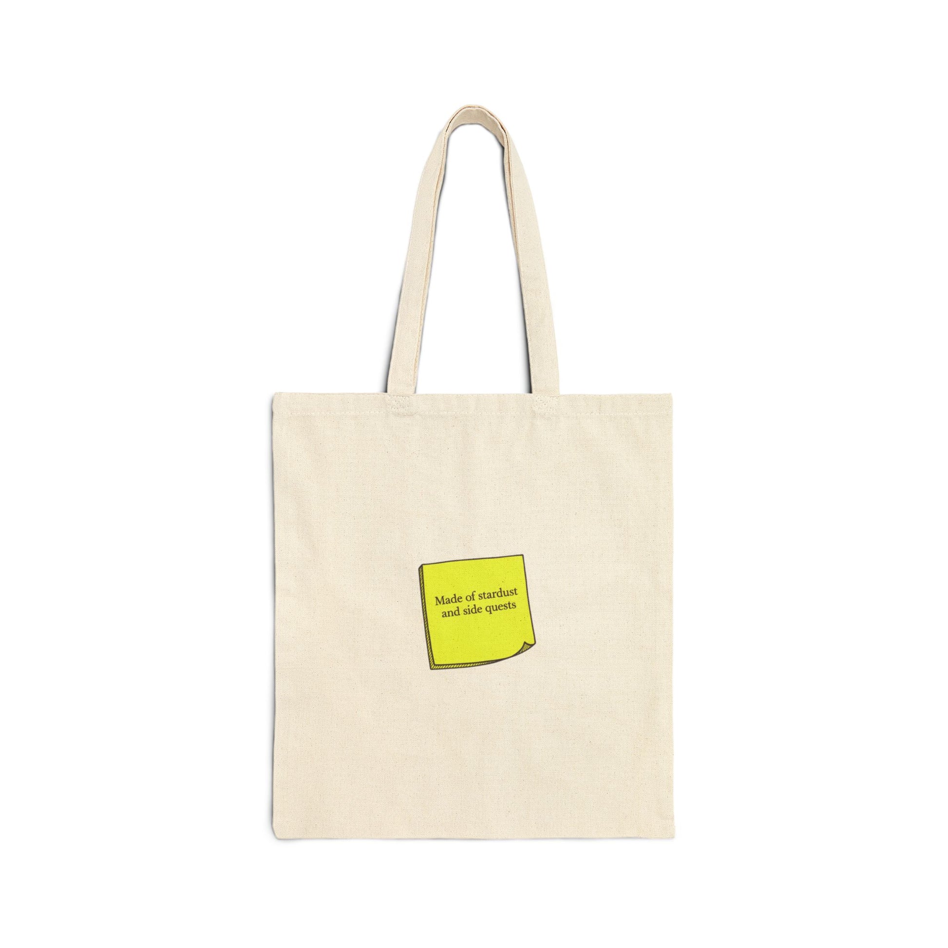 Cream canvas tote carrying a tiny, tongue-in-cheek microcaption centered low on the front — a whisper of sarcasm for minimalist wardrobes. The restrained layout and neutral palette let the small serif-like text read as a private aside rather than loud branding, matching the Deadpan Micro-Text aesthetic of subtle humor and negative space. Works as an understated everyday carry for those who prefer low-key messaging and design-conscious accessories.